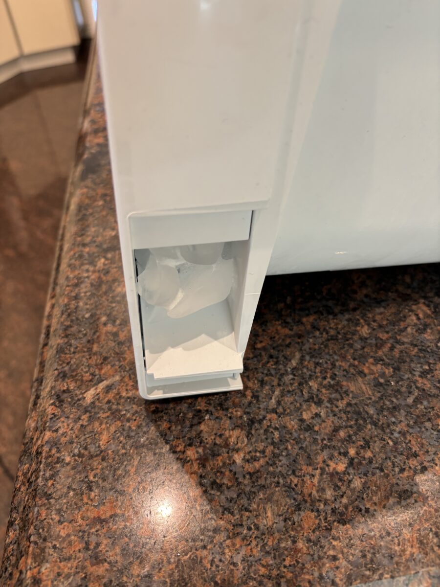 Over time, this heating element can burn out or stop functioning correctly. When that happens, moisture inside the chute can freeze and create a blockage that prevents ice from passing through the opening.
